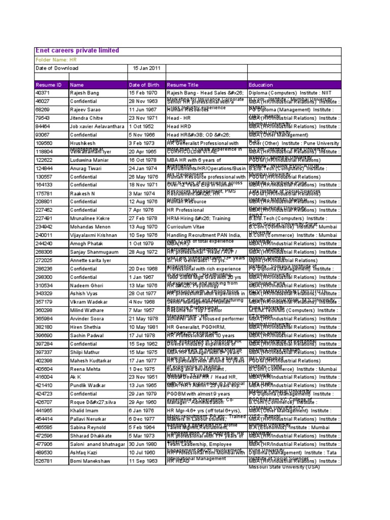 Enet Careers Private Limited Date Of Download Pdf Human Resource Management Master Of Business Administration