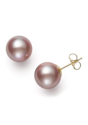Belk Co 10 11 Millimeter Natural Pink Nucleated Freshwater Pearl Stud Earrings In 14k Yellow Gold Belk